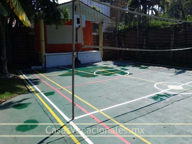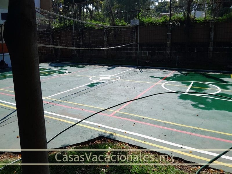 Multi-cancha de basquetbol, cancha de tennis, voleibol. Palapa con asador portátil y fijo, 9 bancos, 2 sillones colgantes, 6 tumbonas, refrigerador, ventilador de techo, tobogán , columpios , iluminación nocturna. |